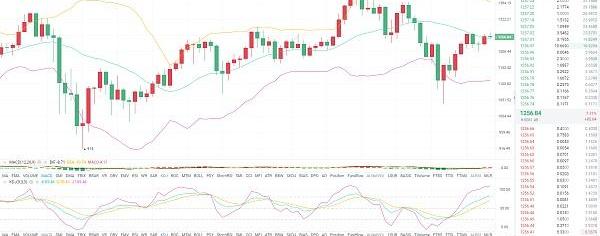 以太坊從早間下跌到1211附近,在這個位置震蕩上行最高來到了1272附近,現以太坊在中軌上行運行,幣價在1257附近,技術指標來看,布林帶呈現張口姿態,附圖指標MACD形成金叉向上運行,綠色動能持續放量,KDJ三線多頭向上運行,BOLL下軌向上抬頭,午間建議做多為主,高位為輔。