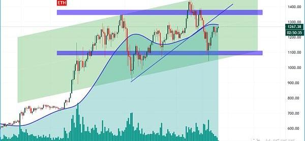 ETH繼續維持較強的上行勢頭,但是新高遲遲不能上破是比較危險的。4小時節奏形成金叉向上,離結構趨勢線的距離已經越來越小,振幅趨于收窄,日線價格在短暫跌破20日均線之后,又快速收回至上方。目前的震蕩區形成時間并不長,所以套牢盤的壓力相對于比特幣要小不少,主要的資金力量來自于新高預期,不過MACD形成二次死叉背離,操作上仍以逢高做空為主,做多只可以做新高的突破買盤。