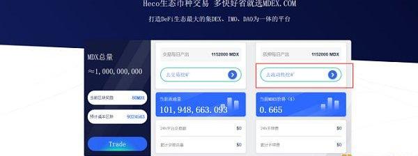 1.進入官網mdex.com,點擊“去交易挖礦”按鈕