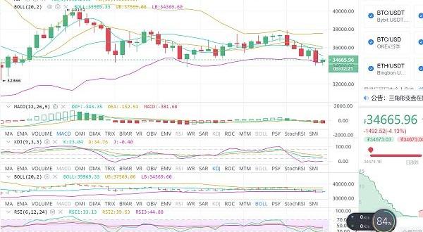 1900/1/1 0:00:00昨晚比特幣行情走的也是比較令人失望,自下午開始反彈后便一直持續到晚上,到了晚上十二點左右一度沖高至38000美元附近,但隨后便開始回調,回調至36000美元附近時稍微止跌進行了小幅的反彈.