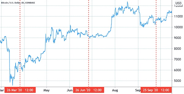 2020年9月26日季度期權到期,當時比特幣在前一日上漲了2%,并在接下來的兩天內繼續上漲了2%。