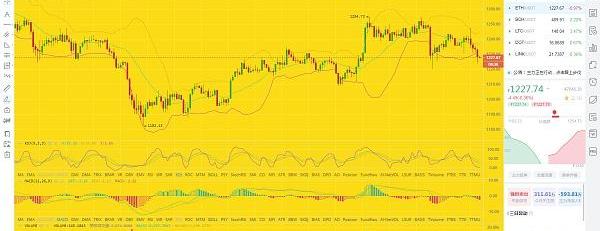 ETH操作建議:反彈1235附近空單進場目標1230-1190止損1245附近