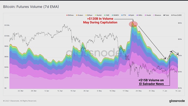 期貨交易量也同樣低迷,特別是相對于5月拋售事件期間1200億美元的交易量。在薩爾瓦多投票后的幾天里,交易量增加了約150億美元。本周后半周,交易量又開始下降。