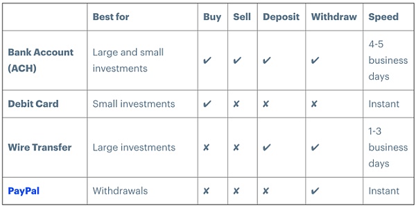Coinbase是美國第一家獲得認證的數字資產交易平臺,總交易額已超2000億美元,是全球最大的數字資產交易平臺之一。平臺操作簡便、界面直觀,用戶只需注冊Coinbase賬戶并進行實名認證,便可使用Coinbase賬戶進行數字資產存取、買賣和轉賬。平臺支持兩種存取款方式:銀行卡(ACH)或匯款(wire transfer),都需綁定銀行賬戶。如果用戶還擁有Coinbase Wallet賬戶,也可進行綁定進一步簡化存取款和數字資產管理操作。