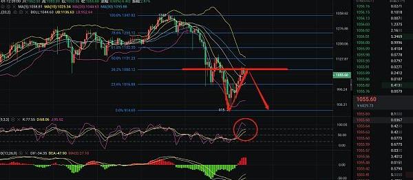 辰飛建議:1060~1075附近空單進場,目標看1030~1000附近,破位再看新低920附近,止損1100附近。