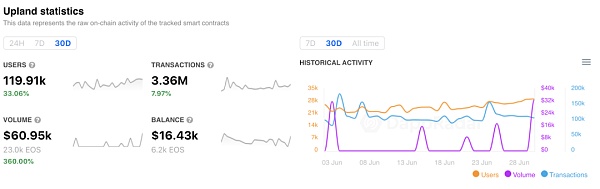 積極的游戲趨勢擴展到其他區塊鏈,如EOS和Polygon。EOS鏈上的Upland在使用量和數量方面有所提升。虛擬財產交易游戲成功將唯一活躍錢包增加了46.68%,在第二季度末達到了24375個唯一用戶。