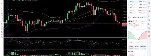 ETH行情分析:短周小時圖來看,布林通道向下縮口,MACD快慢線在零軸下方形成死叉,多空能量柱空頭小幅放量。KDJ三線向下散發。綜合來看,短期思路反彈做空
