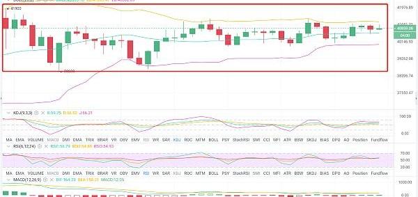 從四小時圖來看,目前布林帶呈開口姿態,各均線呈上攻之勢,整體上行軌道良好,優勢還在。當前行情在回踩39000位置后處于修復整理,價格在緩慢向上至41000。?后續行情如果能夠再次到41300上方區域,日內價格有進一步上行再度刷新高點的可能。???