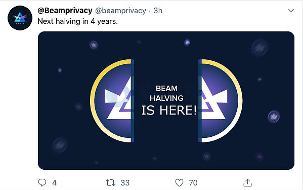 2020年1月5日隱私幣Beam 完成了首次產量減半,區塊鏈獎勵從100減少為50。下次減半將在4年后進行。beam是第一次減半,幅度還是比較大的,有一點要說明,beam跟zec一樣,是有20%的抽成的,所以第一次減半實際曠工方面是從80個減到40個。