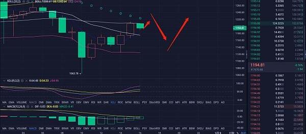 以太坊午夜突破前期新高來看,直逼1300一線,小時級別來看的話,以太凌晨2時沖高觸壓1288.88一線回調大幅回踩跌至1150觸底反彈了,震蕩上行向上試探遇阻延續震蕩下行來看,10時短線下挫跌破1101關口,觸底1062一線反彈,延續震蕩向上,從走勢來看,反彈的力度較強,多頭仍然比較強勢,目前幣價嘗試著向1180一線突破,技術面來看,MACD空頭柱能持續縮量,KDJ金叉三線向上發散,短期走反彈趨勢明顯,建議回調看反彈即可。