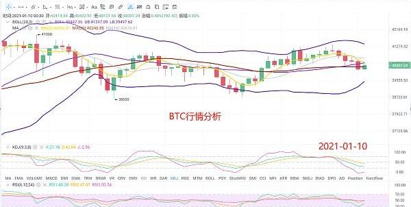 比特幣走出了一波反彈上行的趨勢,布林帶也是在緩慢的收口,價格一直在窄幅震蕩,短期來看,多頭趨勢比較強力,多次反彈上行止于41100附近,但并未站穩在41000上方,試探性的突破,空軍也不甘示弱,價格高位觸及41300附近承壓,回調了近千點,空頭的趨勢也在逐漸匯聚,還有再次回調的可能,目前價格處于中軌一線運行。