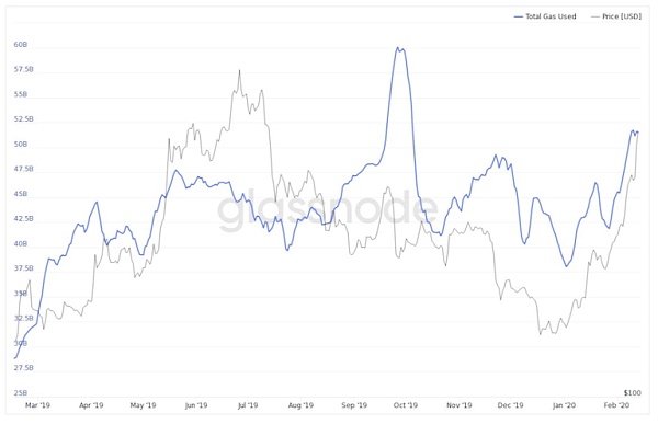 此外,加密貨幣分析公司Glassnode指出,以太坊gas的使用量也達到了四個月來的最高點。