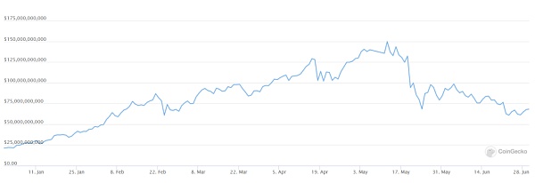根據 CoinGecko 的數據統計,2021年上半年 DeFi 代幣總市值從近 219 億美元上漲至 683 億美元,漲幅約高達 312%,期間總市值最高達到 1500 億美元。