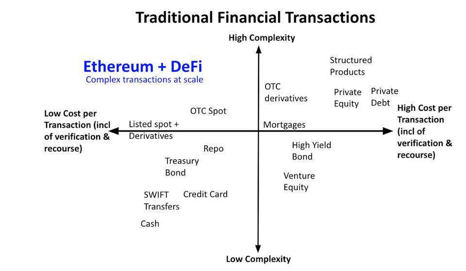 我們認為,以太坊和 DeFi 有可能顛覆傳統金融,因此應給予相應估值,原因如下: