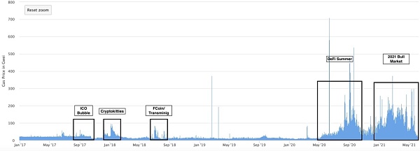 ?以太坊平均gas費用(以體現用途,來源:Etherscan)