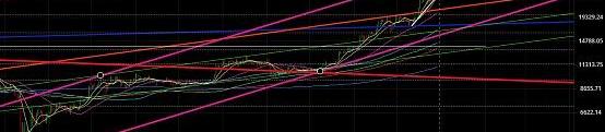 強勢震蕩:那么就是不破17571美金加速趨勢線然后走綠色箭頭繼續上行,因為紫色通道向上延展,時間推移位置會變得更高,這種走勢要求24000美金不破,破了則該趨勢線跌破就會演變成另一種形態——