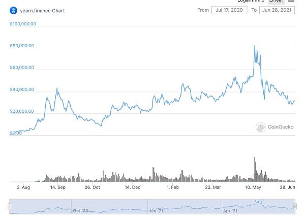 上圖:YFI 代幣的價格表現,其價格在過去的一年里從 800 美元飆升至最高 8 萬美元。圖源:CoinGecko