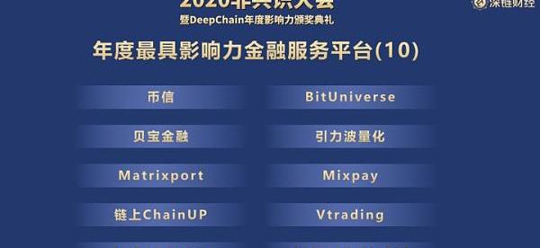 “DeepChain2020年度最具影響力金融服務平臺”獲獎者:幣信、貝寶金融、Matrixport、鏈上ChainUP、AmberGroup、BitUniverse、引力波量化、Mixpay、Vtrading、Point95Global。