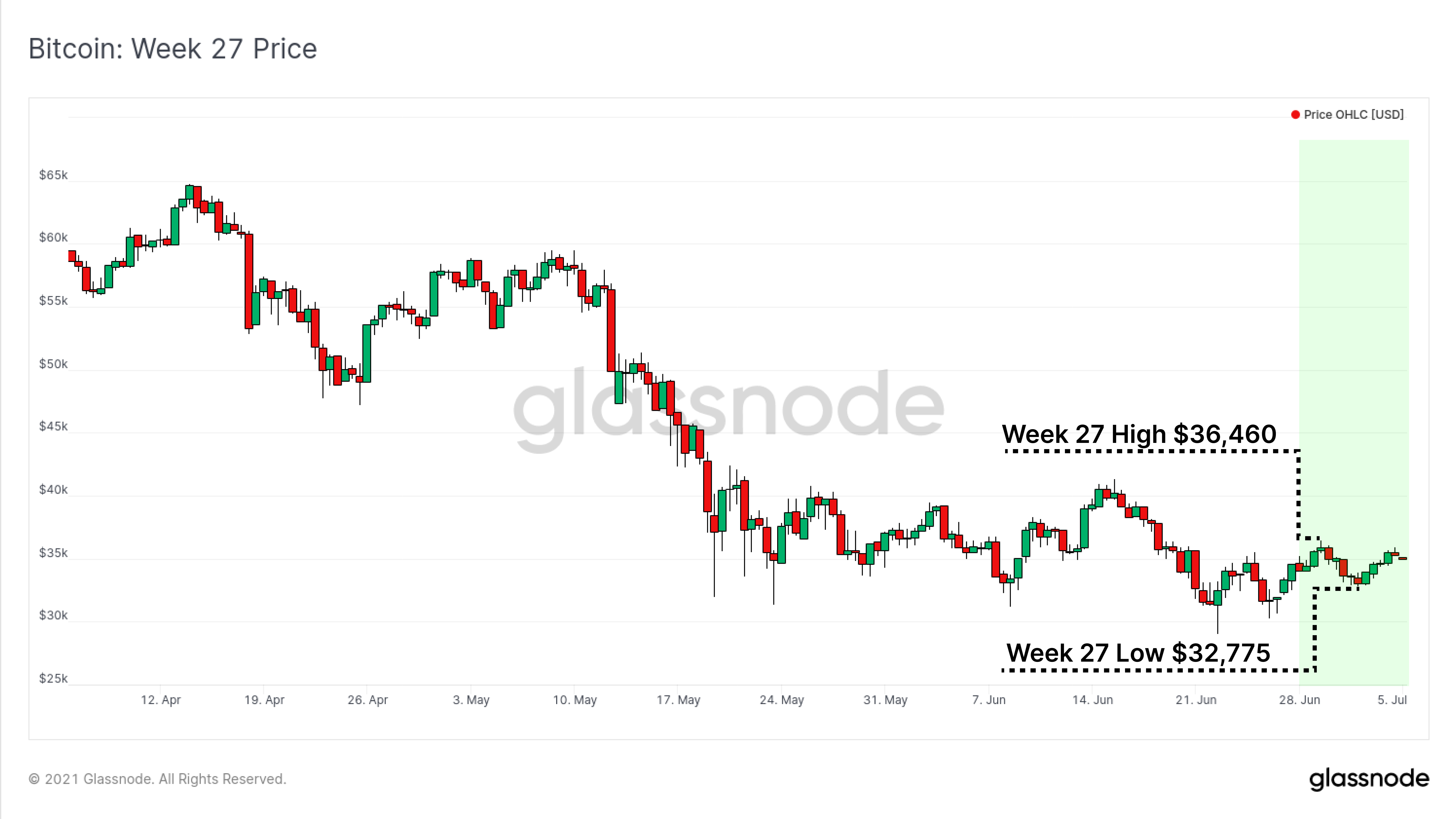 上周比特幣市場價小幅走高,但總體仍在32775美元-36460美元的價格區間內波動。