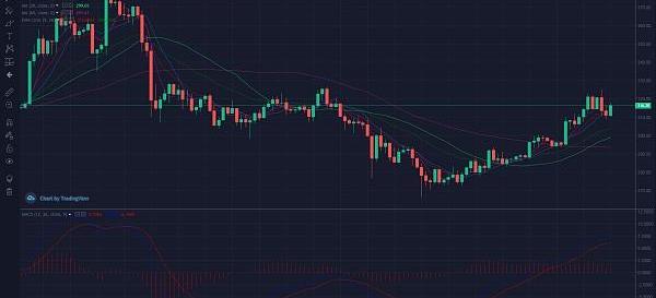 太子如圖所示,1小時周期來看幣價逐步震蕩上行,目前KDJ指標和MACD指標呈現高位轉頭偏空,幣價進入震蕩回調階段,上方壓力330,下方支撐在305。從6小時周期來看,目前上方322形成壓力出陰線,KDJ指標和MACD指標也逐步轉平,幣價預計呈現回落,或回落后再度上漲,下方支撐看310附近,操作上可輕倉空,企穩后繼續進多。晚間行情多變,注意風險!