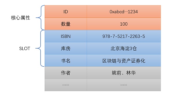 SLOT 可以發揮什么作用呢?一個 SLOT 就是 vNFT 中的一個屬性子集。假設一個 SLOT 圈定了(書號,倉庫編號,書名)三個屬性,其意義就是說,只要兩個 vNFT 在這三個屬性上完全一樣,那就可以被歸入一類。