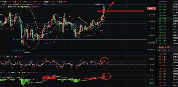 1900/1/1 0:00:00BTC行情分析 昨日比特幣先是突破新高之后來到24600上方開始走了一波急速回落,莊家誘空手段,隨后繼續走震蕩上行直到今日午時十一點幣價最高已經來到25045位置.