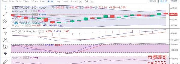 ??以太昨日走了了一波沖高回落,高位觸及637位置,日內凌晨價格再次上拉20余點,高位觸及653位置后開始跳水20余點,目前價格運行在630附近