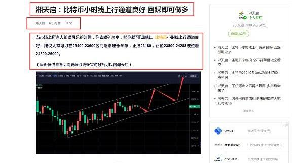 并且再次發文布局比特幣23400-23600區間逐漸建倉多單,止盈23800-24288破位看24500-25000。