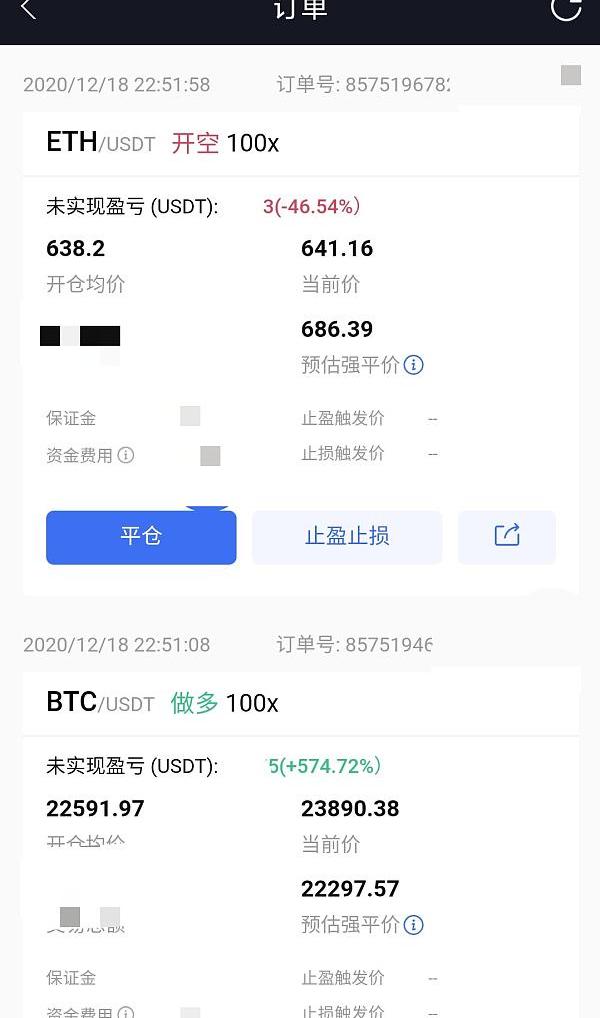 12月18日22:51做空以太坊,同時做多比特幣進行對沖的倉位浮盈繼續放大,目前比特幣的多單浮盈574.72%,以太坊的空單浮虧46.54%,整體為浮盈的狀態,相比12月20日浮盈增大了差不多一倍。