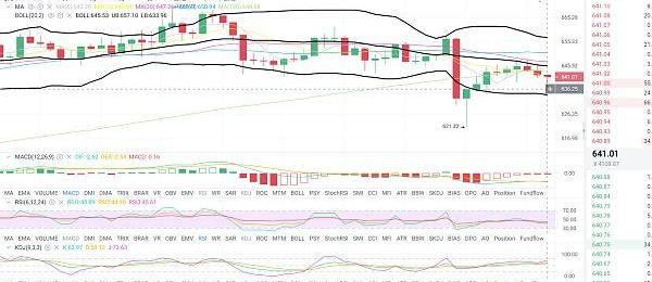 ???以太最近相對平靜,沒有很大的走高突破,并且短線上已經走出下跌走勢;于今日早間五點走出一波近37點的回落,打破小時圖布林下軌支撐,低位觸及621位置后止跌隨后反彈,目前價格運行在643附近,短線支撐關注下方634一線位置。從小時線級別來看,布林帶開口走平,幣價運行于中下軌區域。附圖指標中,MACD空頭動能放量減弱,快慢線粘合運行,KDJ三線向上發散,RSI處于常規區。綜合來看,午間行情多頭占據優勢,高師建議操作思路以順勢看多為主。