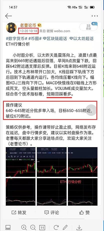 XRP/HKD-1.98%??老曹今天早間10點給出以太的多單策略,建議以太在640--645附近分批多單入場,目標650--655附近,破位670附近。午間2點以太最高來到652附近,最高收獲近10個點以上,多單思路完美止盈,有跟上操作的朋友嗎?詳情可看今天早間10點的策略了解。老曹每天都跟大家更新分享進場點位,歡迎大家關注。