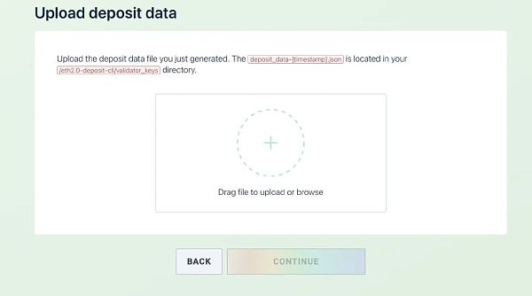 deposit_data JSON鍵是與驗證器節點關聯的公鑰,在接下來的步驟中需要上載此鍵
