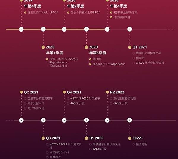 XRP/HKD-3.19%近日BTCV在官方網上發布了最新的線路圖,包含了2019年底到2022年的詳細項目規劃。項目規劃包括了接下來的技術走向,市場推廣和落地應用等方面的具體安排。通過這個線路我們不僅能夠了解BTCV對未來的規劃,也可以很好地回顧BTCV在過去一年多的時間里所作出的成績。