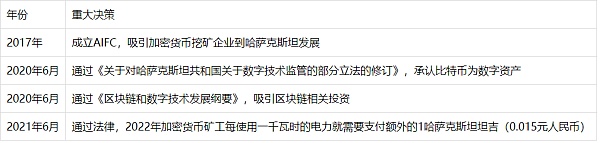 2021年7月,哈薩克斯坦總統托卡耶夫簽署了一項新法律,修改了這個中亞國家關于“稅收和其他預算義務支付”的立法,對在該國經營的加密礦工使用的能源征收額外的稅費。新法將于2022年1月生效。加密貨幣礦工需要為使用的每千瓦電力支付約0.0023美元的附加費用。