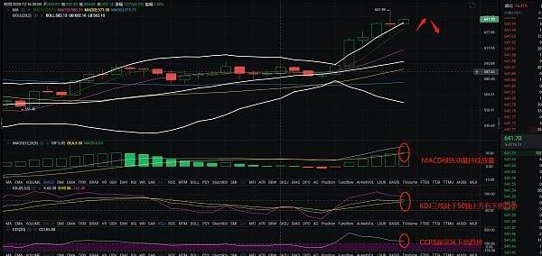 從4小時圖來看,目前價格641置附近波動,MACD綠色動量持續放量,KDJ三線目前處于50軸上方有拐頭向下趨勢,CCII線超買區下拐趨勢,由此可見短期走勢還是一個震蕩行情,操作上建議回調低多為主,高空為輔。策略每天全網公開,實盤操作,現價報單,簡單粗暴,時刻跟緊,及時抓空補倉,歷史現單可查