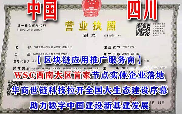 訊12月11日,WSC西南大區首家節點落地實體“華商世鏈科技發展有限公司”注冊成功。