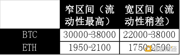 通過底層的數據抓取,我們可以匯總幾個大的 BTC/ETH 對穩定幣的 LP 池子,總結得出 LP 投資者對于市場 BTC 和 ETH 近期價格波動范圍的判斷。