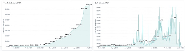 這就是礦工可提取價值(MEV)的世界:在一個區塊內訂購交易的能力的價值。MEV 是以太坊上一個越來越大的市場,估計每天價值 1-4 百萬美元。但獨立于市場規模和潛在利潤機會,MEV 很重要,因為它直接影響當今區塊鏈的可用性和安全性。