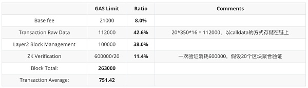 再看看zkRollup方案在Layer1的gas消耗。整個zkRollup方案的主要gas消耗為三部分(withdraw不考慮在內):