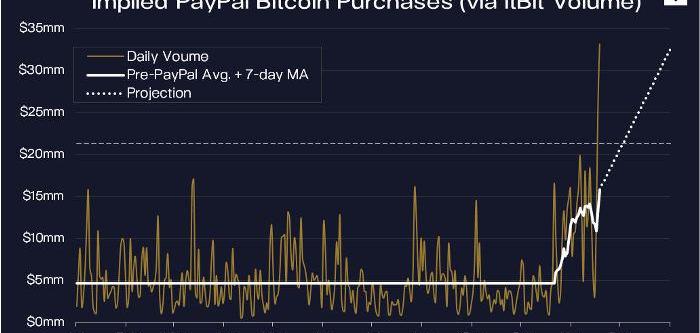 在2020年11月發布的題為“比特幣短缺”的報告中,Pantera資本指出:自11月12日PayPal加密貨幣交易服務推出之后,PayPal合作伙伴Paxos平臺上的比特幣交易量出現了持續暴漲。僅僅運行一周,PayPal就購買了將近70%的比特幣新產量。