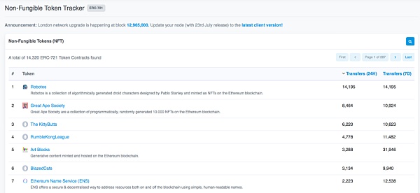 這種趨勢在公鏈瀏覽器中的數據統計上體現同樣明顯。Etherscan顯示,共有14,320 個ERC-721 代幣合約,BscScan顯示,共有 4,675 ERC-721 代幣合約,Hecoinfo顯示有644 HRC-721 代幣合約,可以看出,即便將后兩者相加,仍然少于以太坊。
