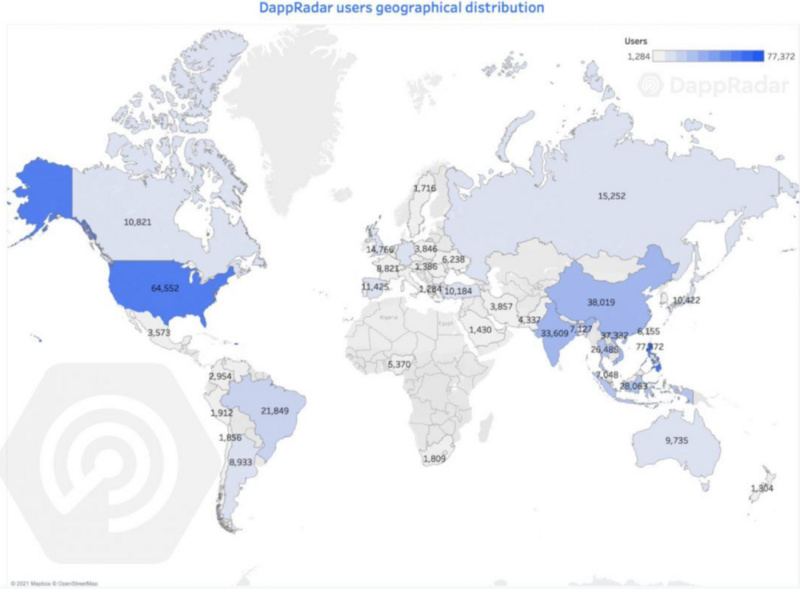 我們還注意到,對我們行業的興趣主要來自美國和亞洲。用戶個人正逐漸意識到該行業的巨大好處。最新的趨勢,如通過游戲賺錢的微觀經濟,通過向菲律賓、泰國和委內瑞拉等地區宣傳加密貨幣和區塊鏈作為一個整體的潛力,推動了大規模采用的敘事。
