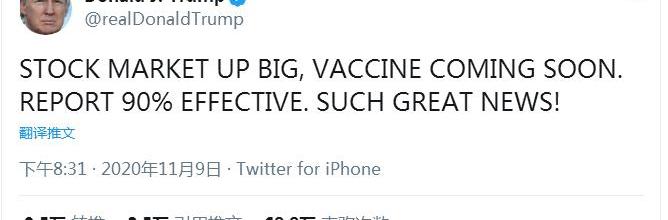 昨晚,特朗普發推文表示,“股市大漲,疫苗很快到來。90%有效。真是個好消息!”在各大股指暴漲之時,比特幣剛開始其實也正在拉升,但似乎突然意識到了自己應該跟隨黃金的走勢,于是掉頭往下,多頭爆倉無數。