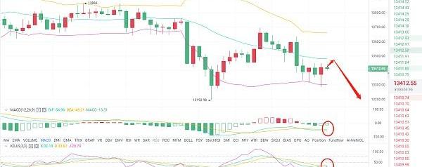 目前我們從小時級別圖可以看到,目前幣價經過一波拉升之后,已經到達了一個相對的高點。能明顯的看到上方壓力位是非常強勁的。另外馬上進入回調區間。日線也馬上要收線了。此時我們應順勢進場。幅圖KDJ三線也從超賣區走出。呈下拐發散運行狀態。所以我們現在的思路要以高位空單為主。