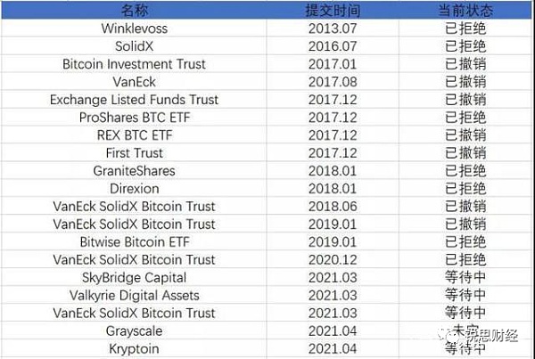 盡管多年來不少公司與機構進行了多次申請嘗試,但美國SEC仍未通過任何一個申請。