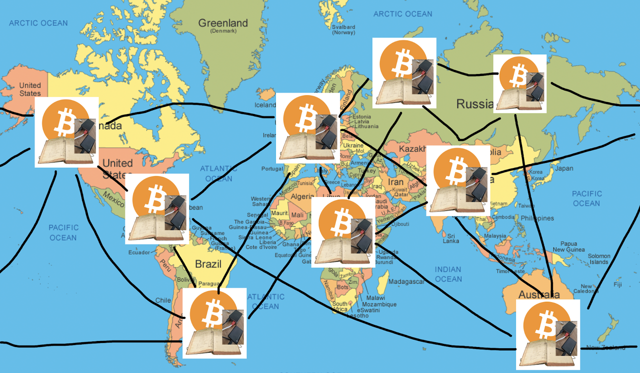 這個賬本的副本(復制品)存在于全世界的數千臺計算機里,且這些計算機都是相互連接到一個網絡中、并且保持同步的。這些計算機我們叫 “節點”。