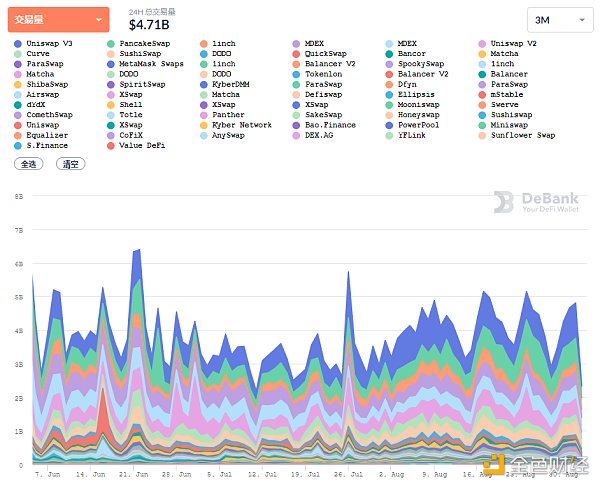 過去24小時去中心化交易所的交易量數據來源:Debank