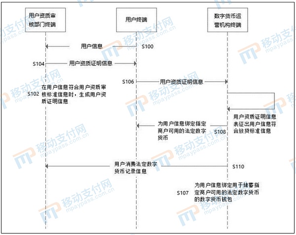 而該專利則專門提供了一種數字貨幣貸款發放的方法,能夠解決現有技術中難以實現固定用途貸款的資金用途限制的問題。當用戶申請貸款時,首先向用戶資質審核部門終端發送用戶信息,以用于用戶資質審核部門終端在用戶信息符合資質審核標準信息時,生成用戶資質證明信息,然后將用戶資質證明發送到數字貨幣運營機構終端,在用戶資質證明信息表征出用戶信息符合放貸標準信息時,為用戶信息綁定指定商戶可用的法定數字貨幣。