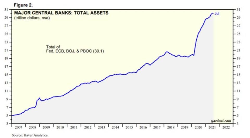 僅在美國,美聯儲在過去 18 個月就購買了 4 萬億美元債券,而美國政府在 2021 年每小時的支出為 8.75 億美元。