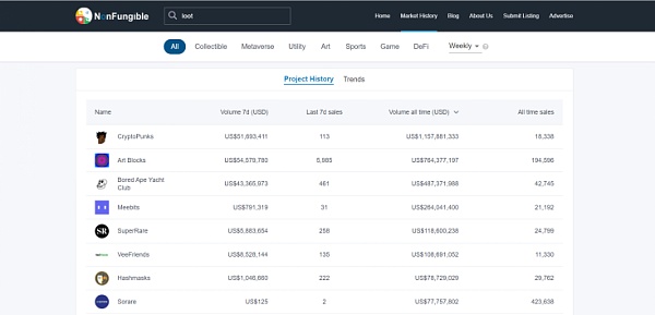 NFT的誕生基于2017年以太坊中一個叫做CryptoPunks的像素頭像項目。直至今日,區塊鏈世界中爭相誕生了無數的NFT作品,其中最出名的是加密藝術家 Beeple 的 NFT 作品《Everydays: The First 5000 Days》在全球頂級拍賣行佳士得以 6934 萬美元的拍賣價成交。還有更多在區塊鏈上賣出很高價值的NFT:比如CryptoPunks最高的日銷售額達到過1.22億美元的高度,還有最近人氣大漲的Loot等等。